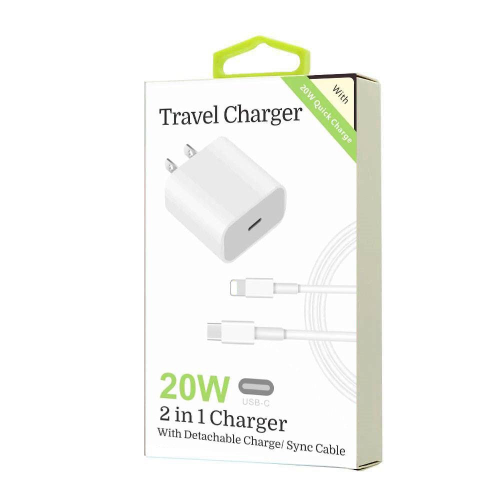 20W 8-Pins to Type-C 2 in 1 Fast Charger (white)