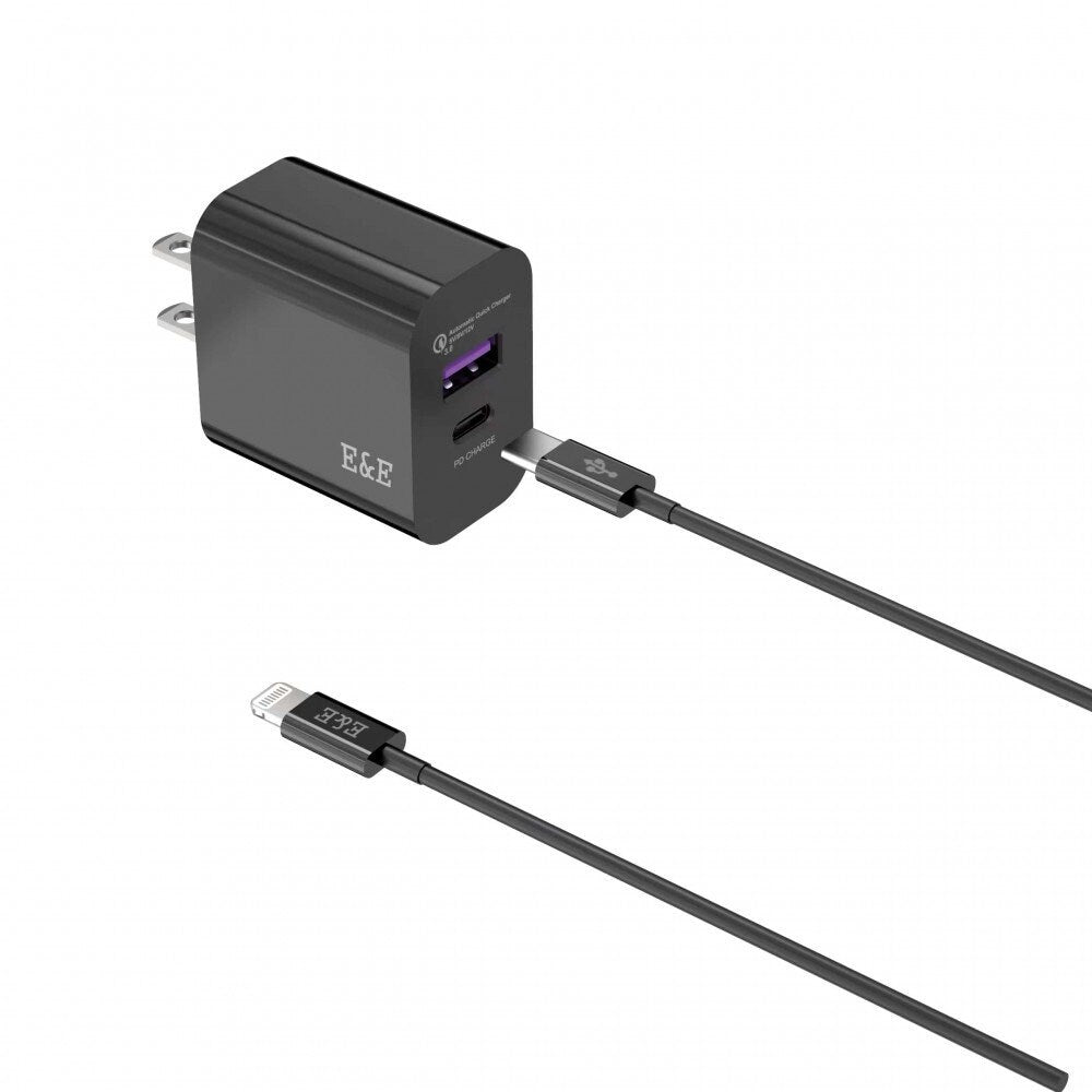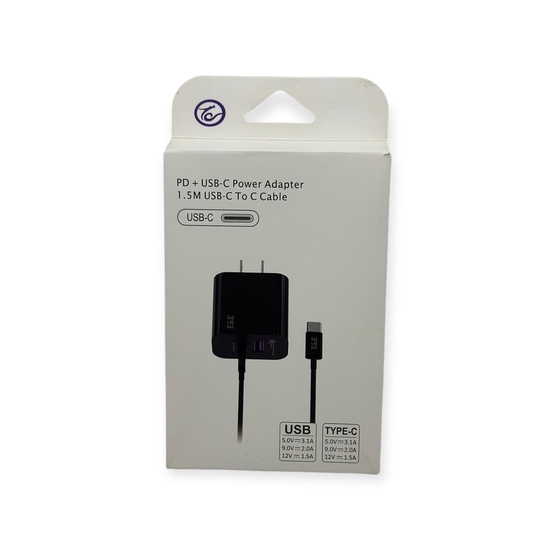 E&E PD+USB-C Power Adapter 18W 1.5M USB-C To C Cable Set (Black)