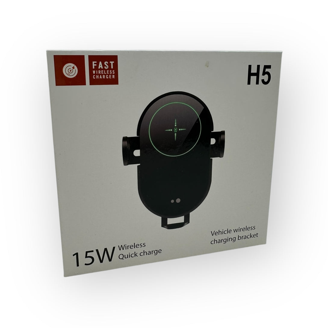 The H5 15W Auto Open Wireless Car Mount Charger (black) is a fast and efficient charging solution for your car. With its 15W power, it charges your devices quickly and reliably. The auto open feature makes it easy to use while on the go. Say goodbye to slow charging times and hello to a fully charged device in no time.
