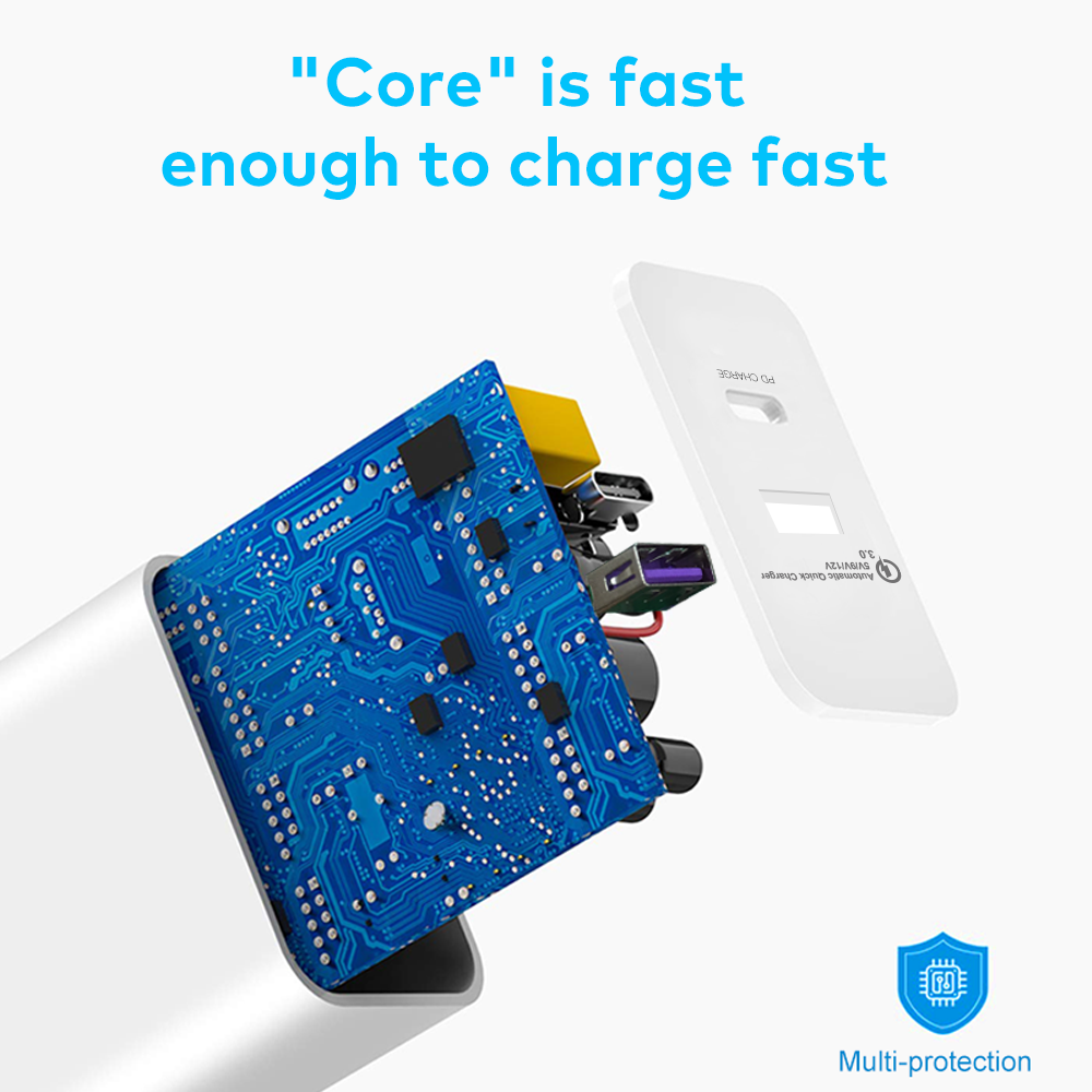 This USB-C PD 20W+USB Dual Power Adapter with a 1.5M USB-C to Lightning Cable allows for fast charging of your devices. With its advanced technology, it delivers efficient and quick charging, providing up to 50% charge in just 30 minutes. Save time and always be powered up."