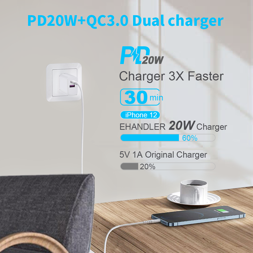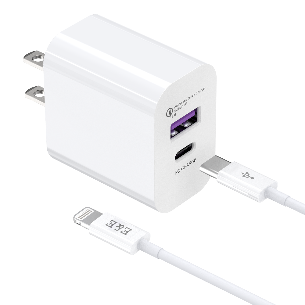 USB-C PD 20W+USB Dual Power Adapter 1.5M USB-C to Lightning Cable